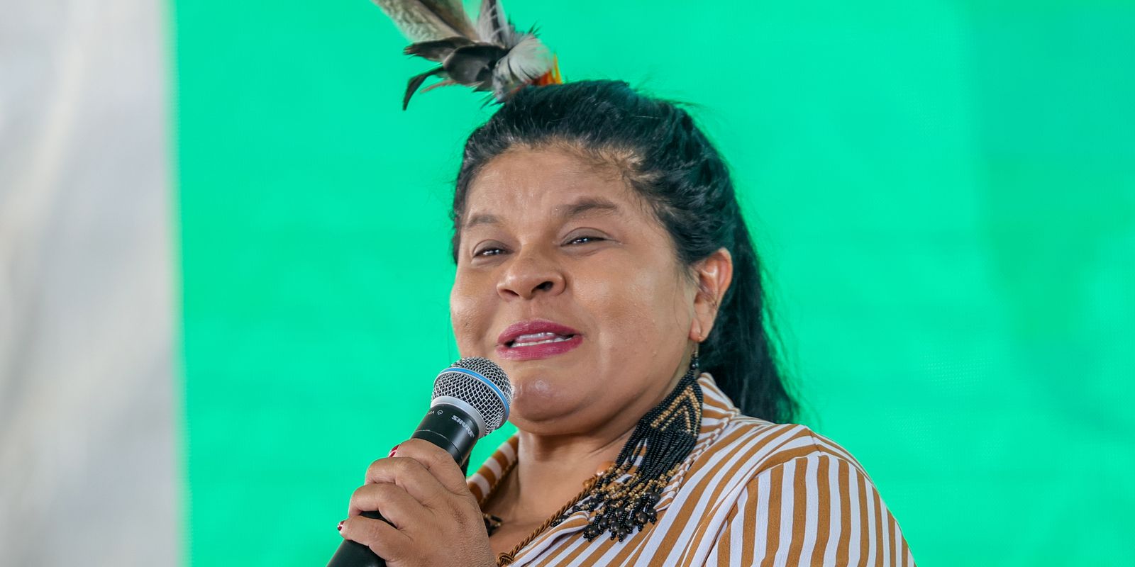 Durante a cerimônia, no discurso, Guajajara manifestou apoio à ministra do Meio Ambiente e Mudança do Clima, Marina Silva, que foi atacada pelo senador Plínio Valério (PSDB-AM) durante a audiência na Comissão de Serviços de Infraestrutura do Senado, nesta terça-feira (27).